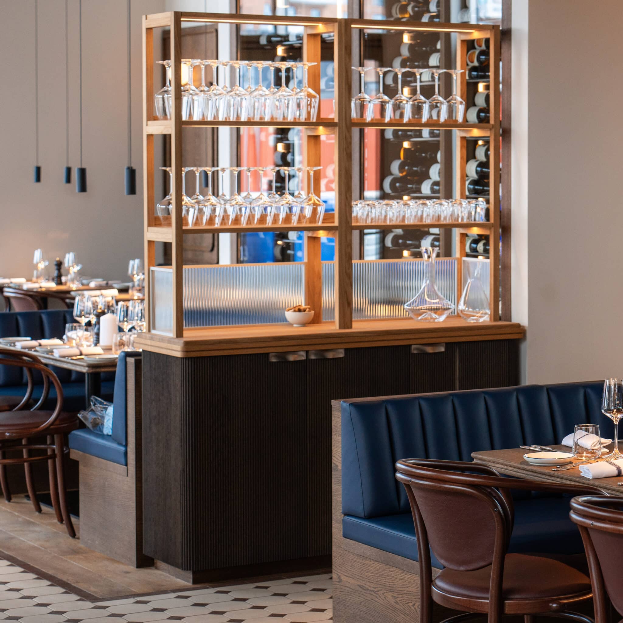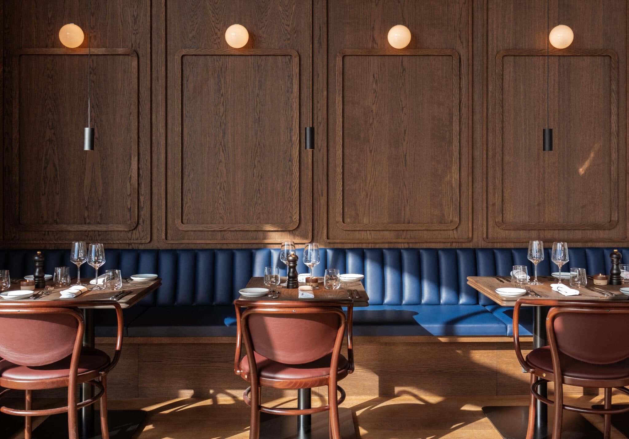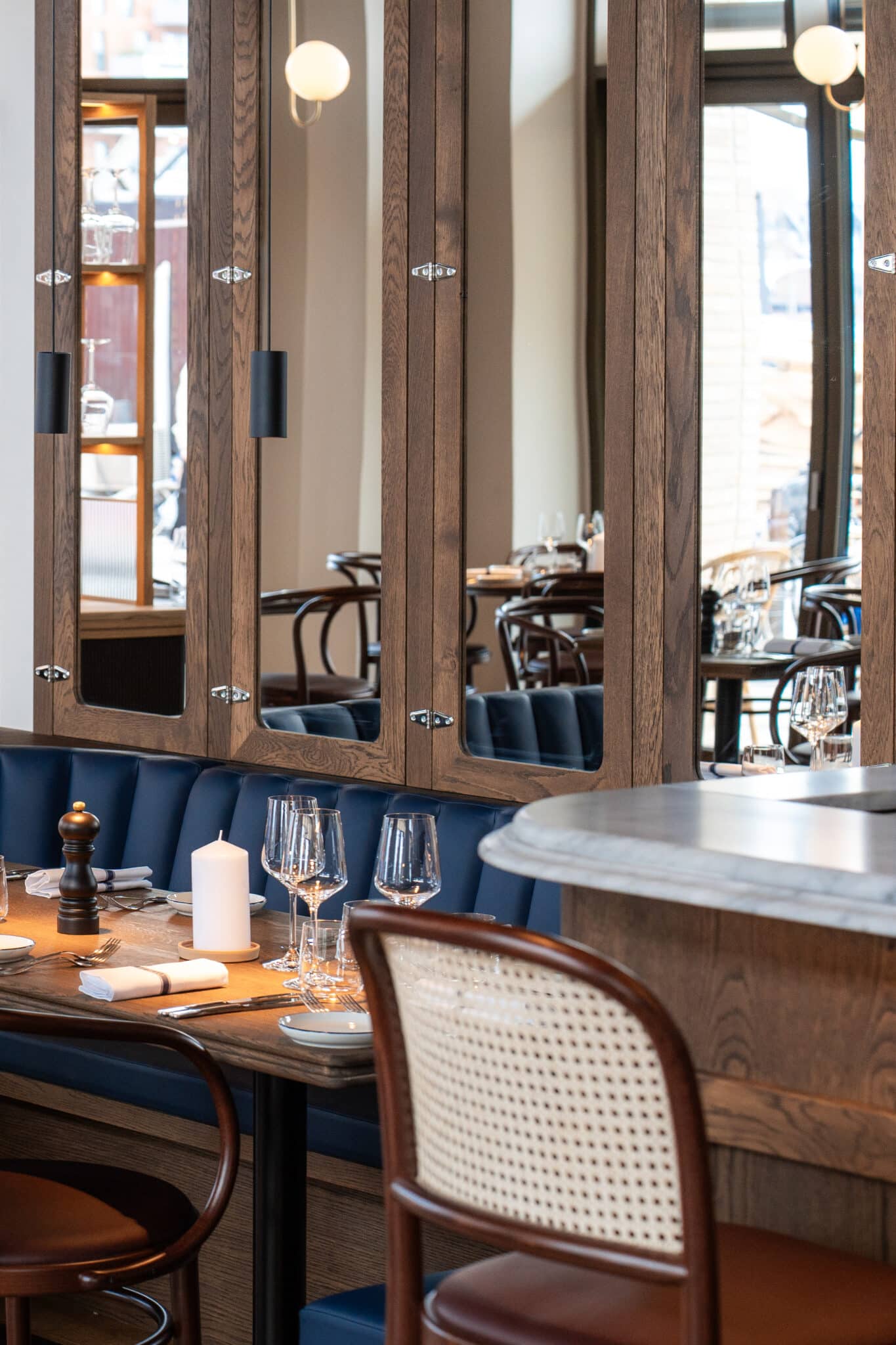 Interiøret til restaurant Le Bleu er inspireret af den klassiske franske bistro.